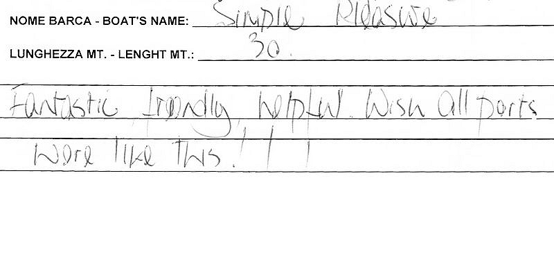 Fantastic friendly, helpful. Wish all ports were like this!!!